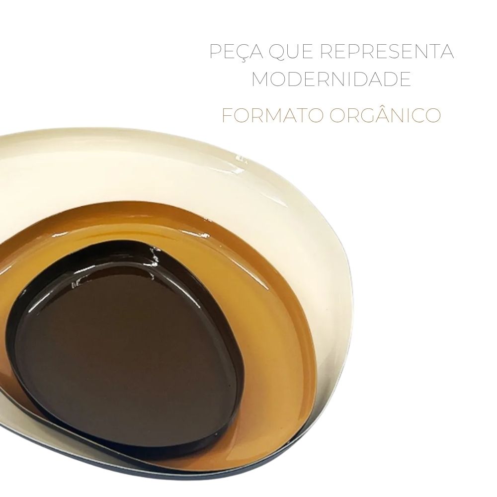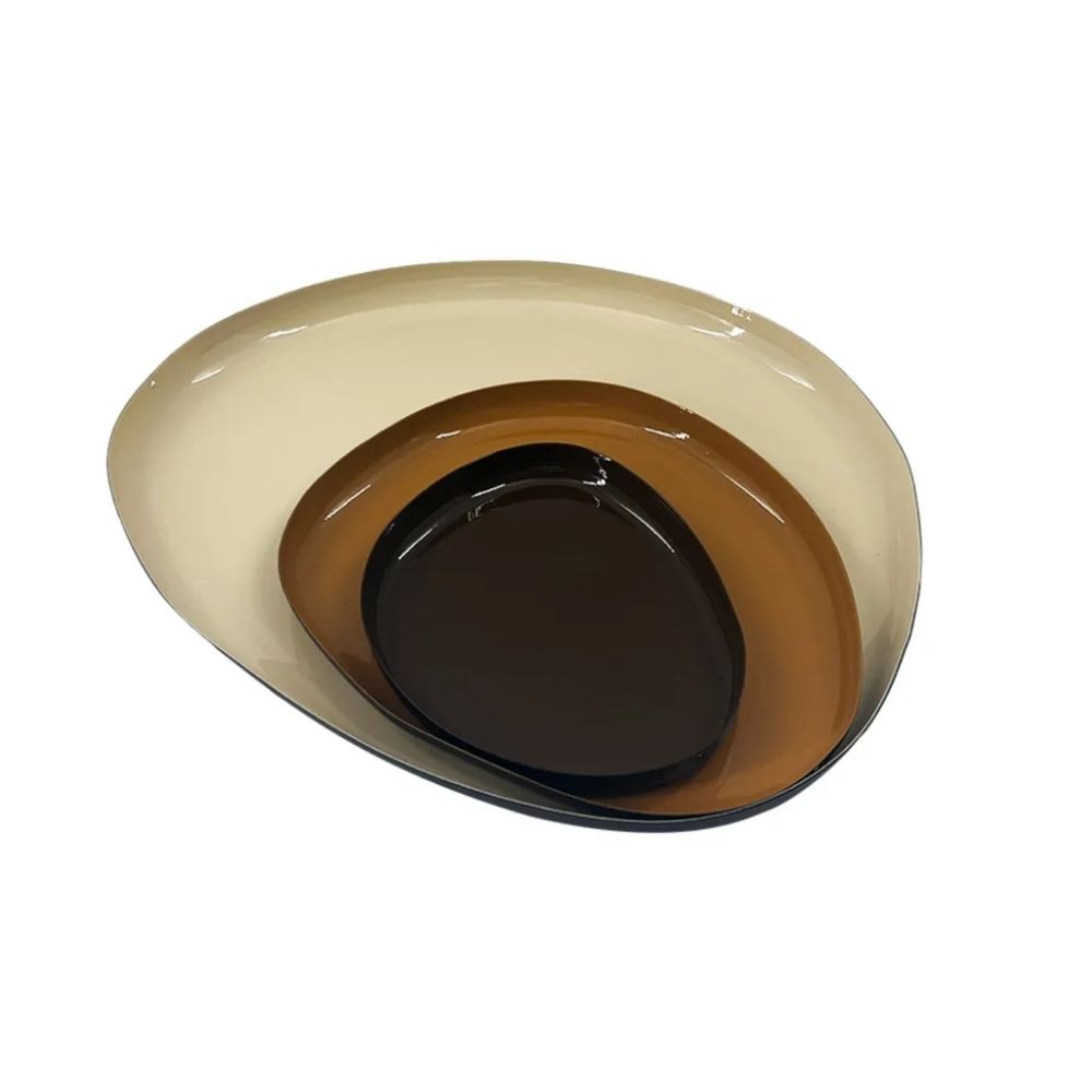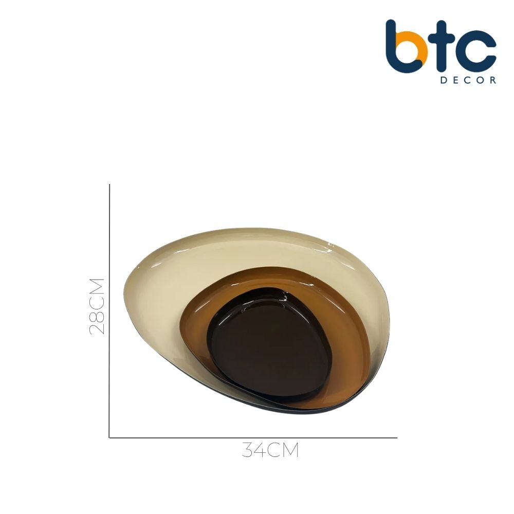 Centro de Mesa Conjunto de Bandejas em Metal Bege e Marrom 3 Peças BTC
