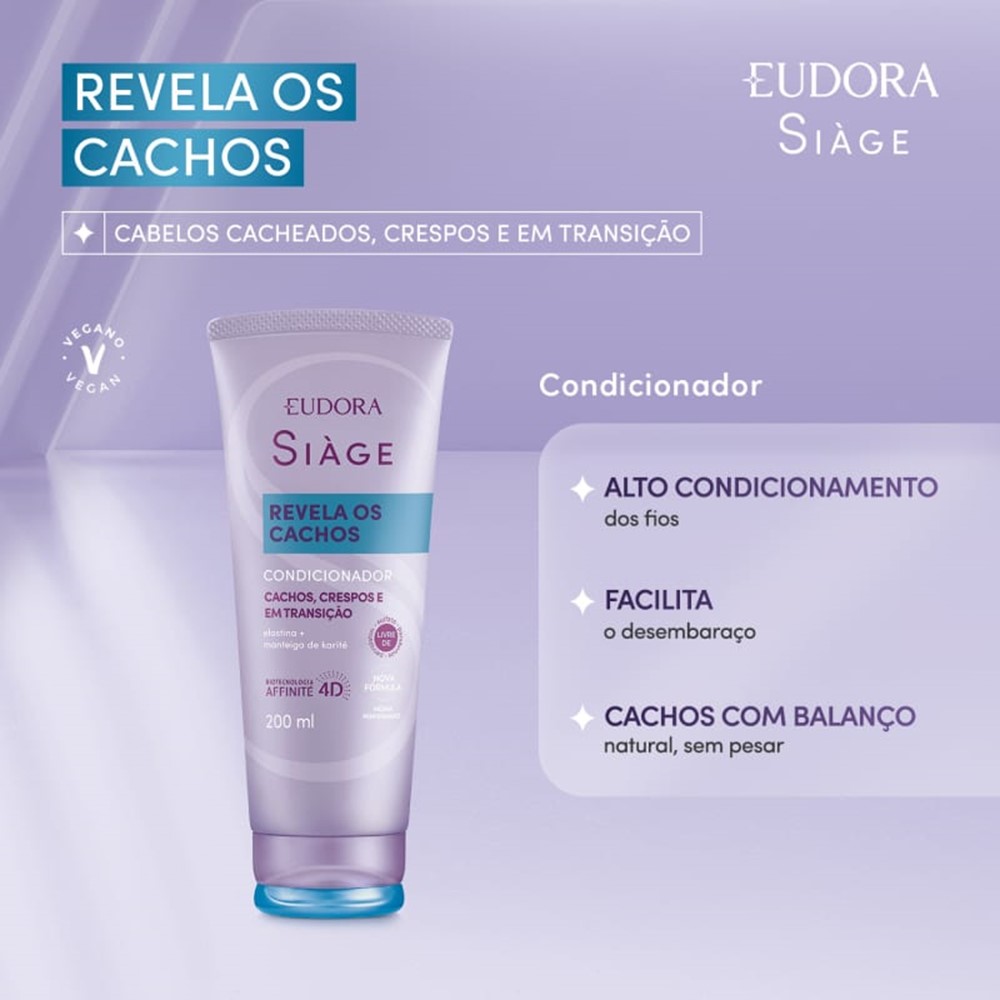 Condicionador para Cabelos Cacheados Revela Os Cachos Ondulados 200ml Eudora Siàge