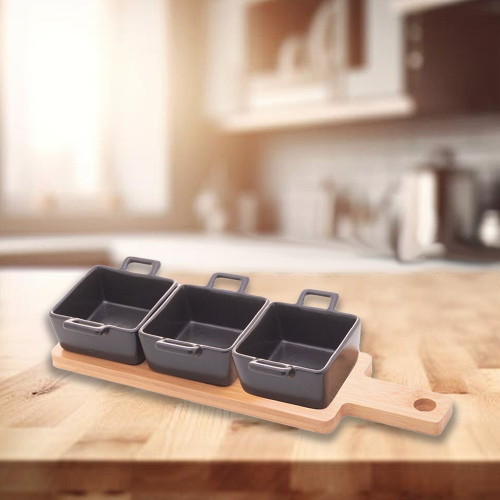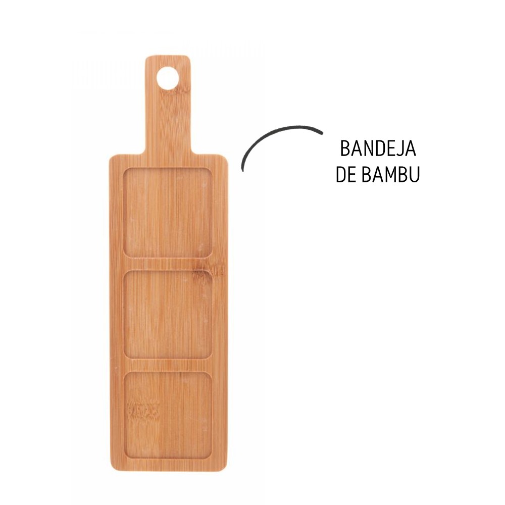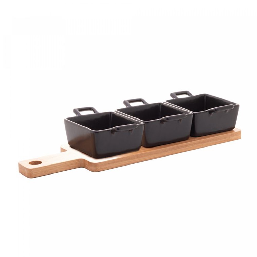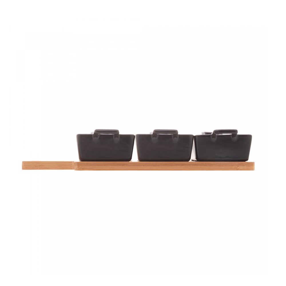 Conjunto Bandeja de Bambu com 3 Petisqueiras Quadradas Preta 28,5x10x 5cm Wolff