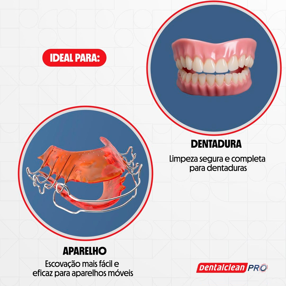 – Higienização eficaz de próteses e aparelhos.
