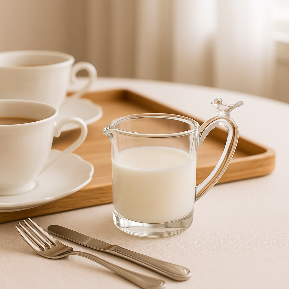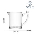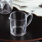 A jarra leiteira é projetada para o serviço de líquidos, como leite, molhos ou caldas, com capacidade para 250ml. Fabricada em cristal ecológico, proporciona maior durabilidade e resistência a pequenos impactos, além de realçar a coloração do líquido servido.