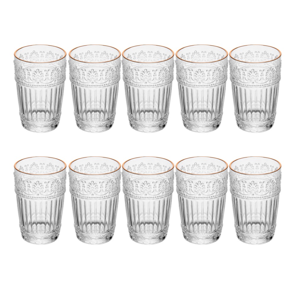 Jogo 10 Copo Mauve com Fio de Ouro 350ml de Cristal Ecológico Wolff