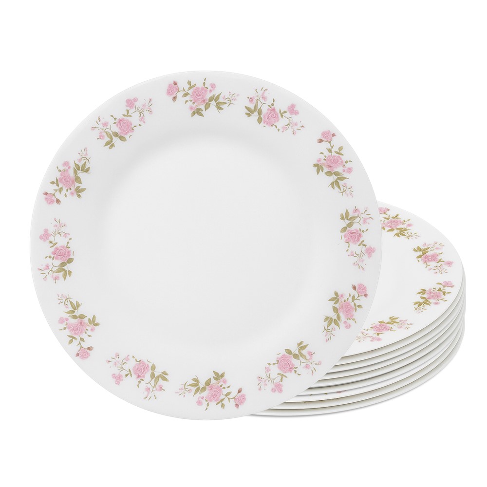 Jogo 10 Prato Raso de Vidro Branco Flowers Pink 25,5cm Em Casa Tem