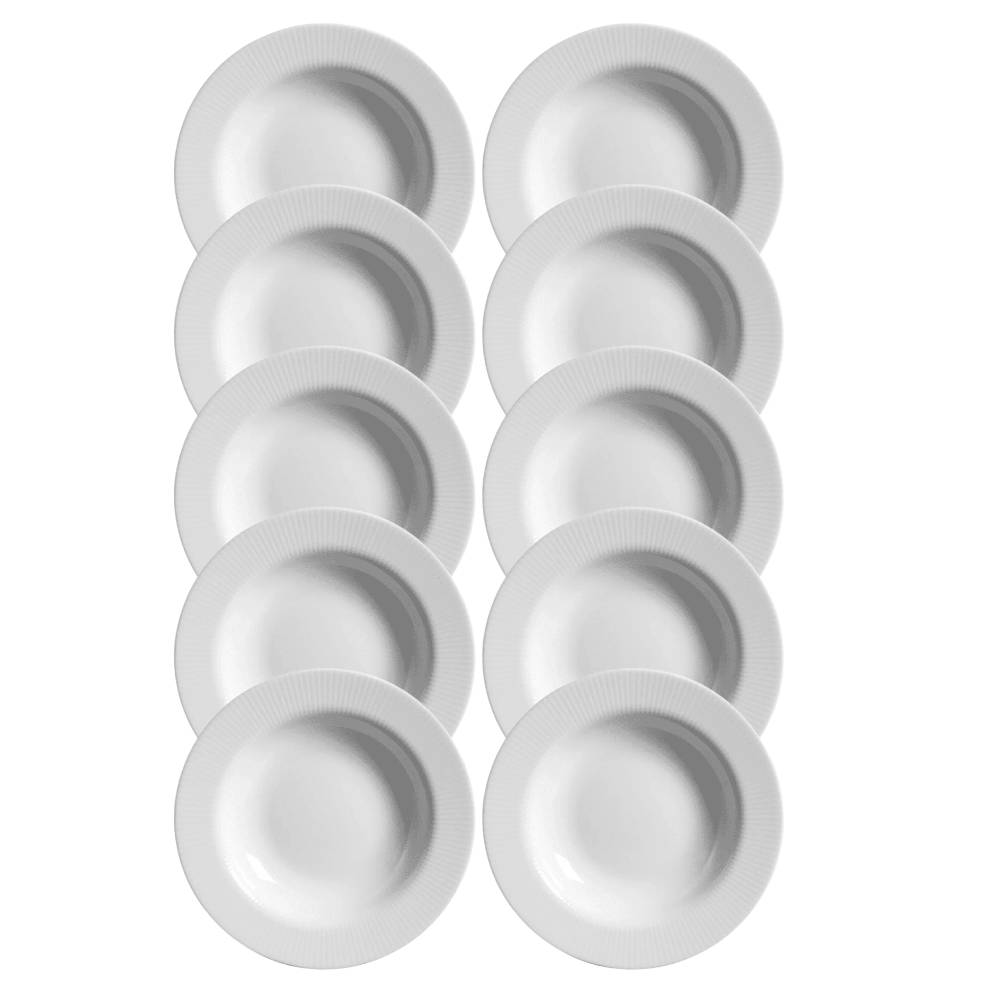 Jogo 10 Pratos Raso Plissan Relevo Branco 33cm Cerâmica Alleanza