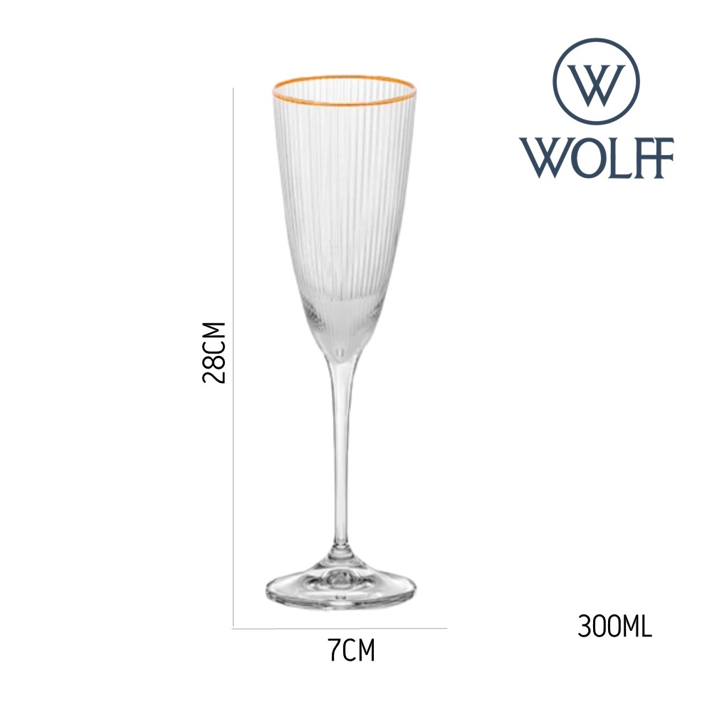 Taça de Champanhe Vidro Wolff Borda Dourada Lines 300ml