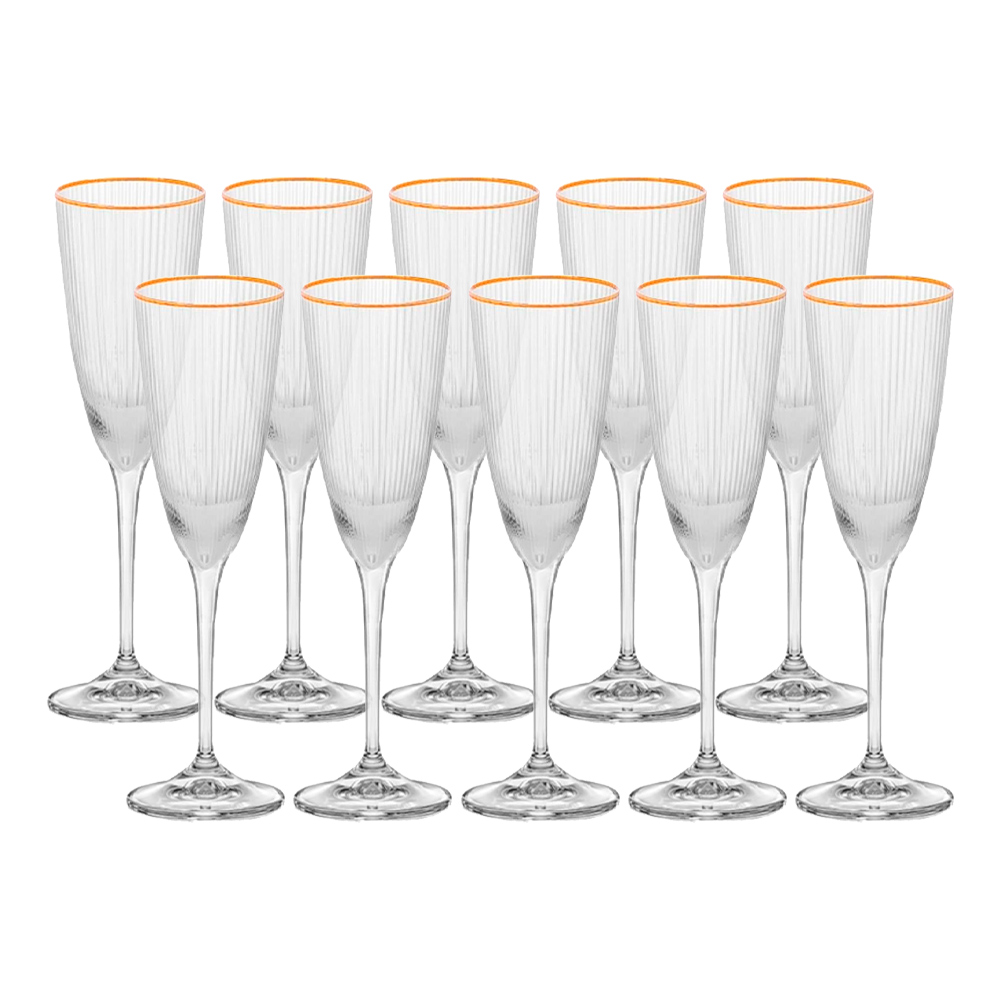 Jogo 10 Taças de Champanhe Vidro Wolff Borda Dourada Lines 300ml