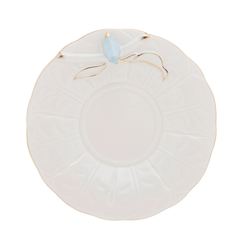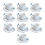 Jogo 10 Xícara de Café Porcelana Birds Azul e Branca Fio Dourado Pássaro com Pires 100ml Wolff