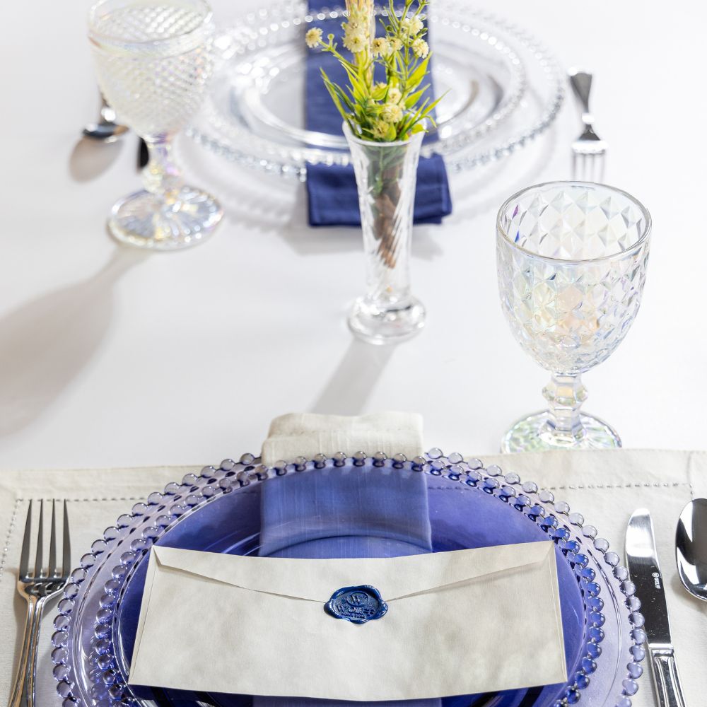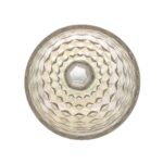 A característica “furta cor” da taça manifesta um efeito visual iridescente, onde a cor do objeto parece mudar dependendo do ângulo de visão e da iluminação. Este efeito adiciona uma nuance estética ao produto, tornando cada peça sutilmente diferente e capturando a luz de maneira diversificada.