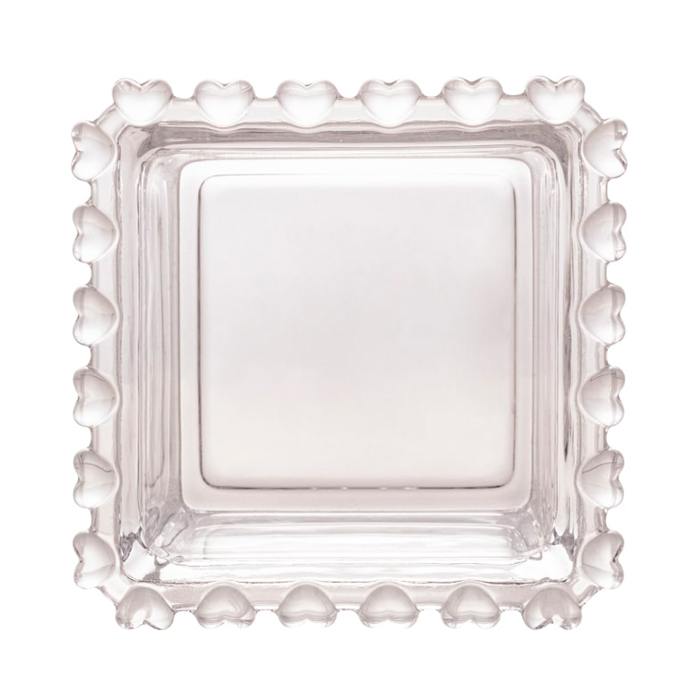 Mini Bowl de Vidro Pequeno Borda de Coração Cristal Formato Quadrado 130ml 8cm Lyor