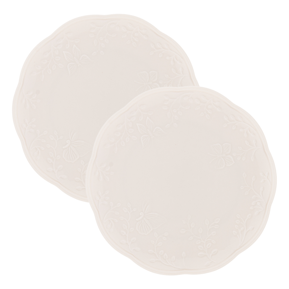 Jogo 2 Prato de Sobremesa Porcelana New Bone Butterfly Branco Off White Lyor 19cm