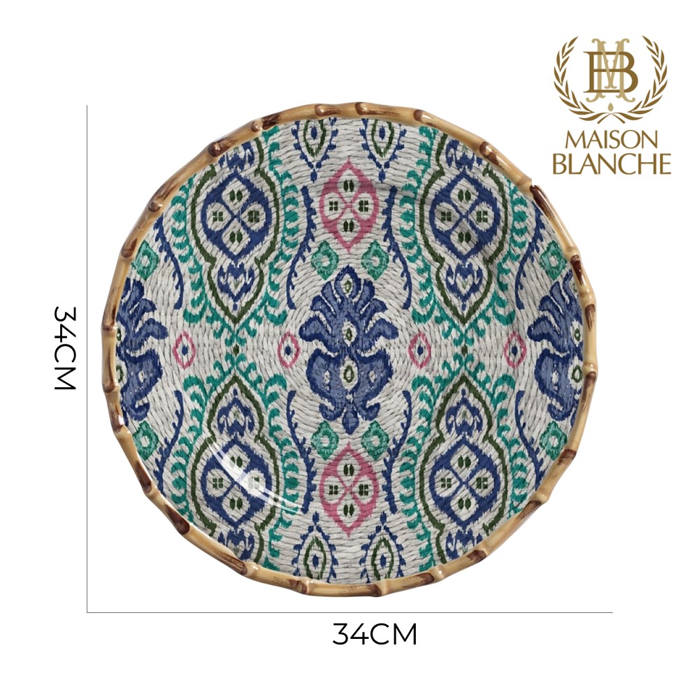 Sousplat Redondo de Cerâmica Borda de Bambu Maison Blanche Mykonos 35cm