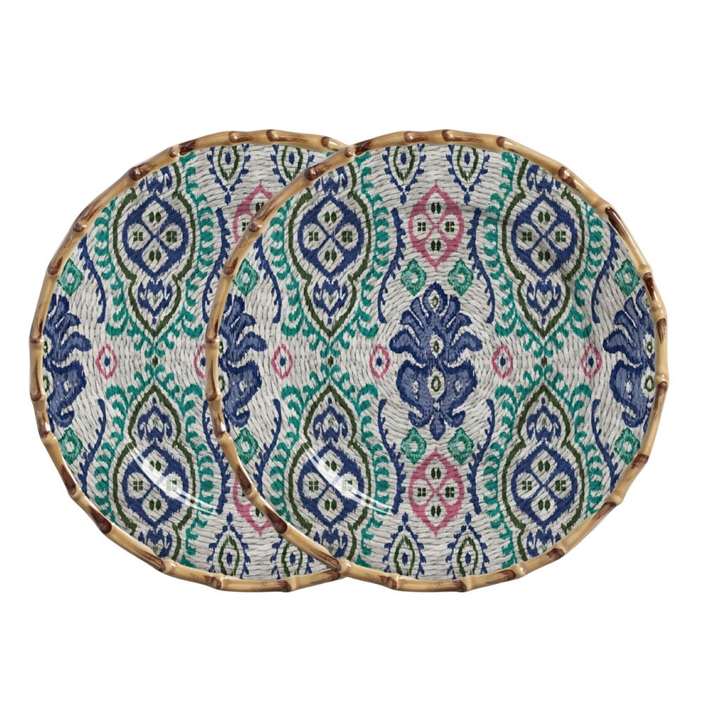 Jogo 2 Sousplat Redondo de Cerâmica Borda de Bambu Maison Blanche Mykonos 35cm