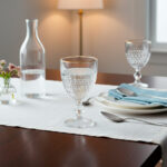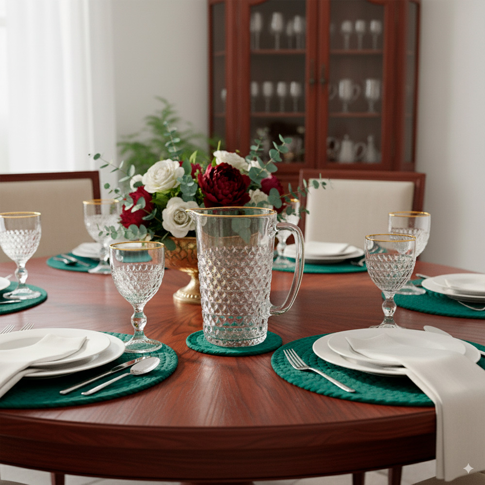 O vidro de alta qualidade garante a neutralidade no sabor das bebidas, preservando suas características originais. Recomenda-se a lavagem manual com detergente neutro e esponja macia para evitar danos ao acabamento dourado. A base proporciona estabilidade sobre a mesa, diminuindo o risco de tombamento.