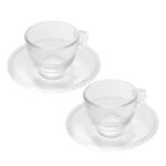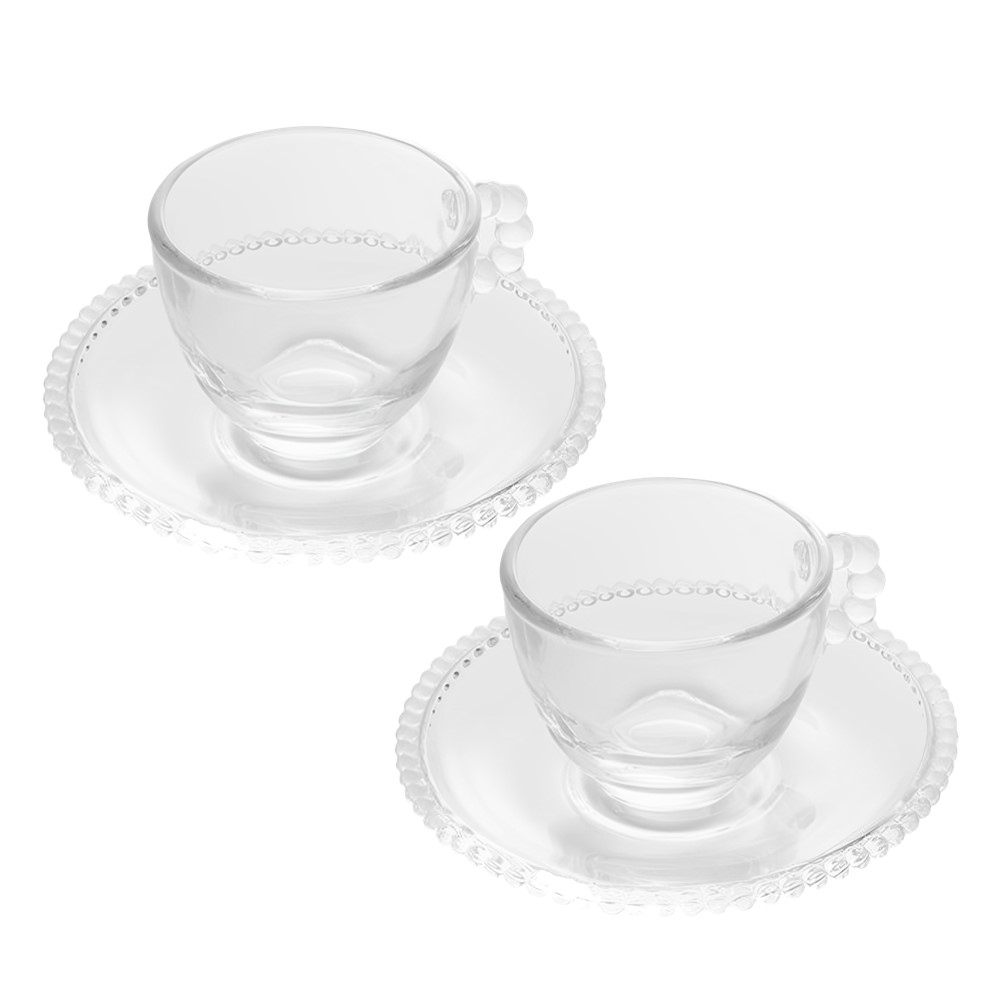 Jogo 2 Xícara de Chá com Pires Cristal Transparente Pearl Pérola 180ml Wolff
