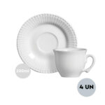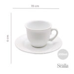 Xícara de Chá com Pires Frisada 200mL Branca Scalla