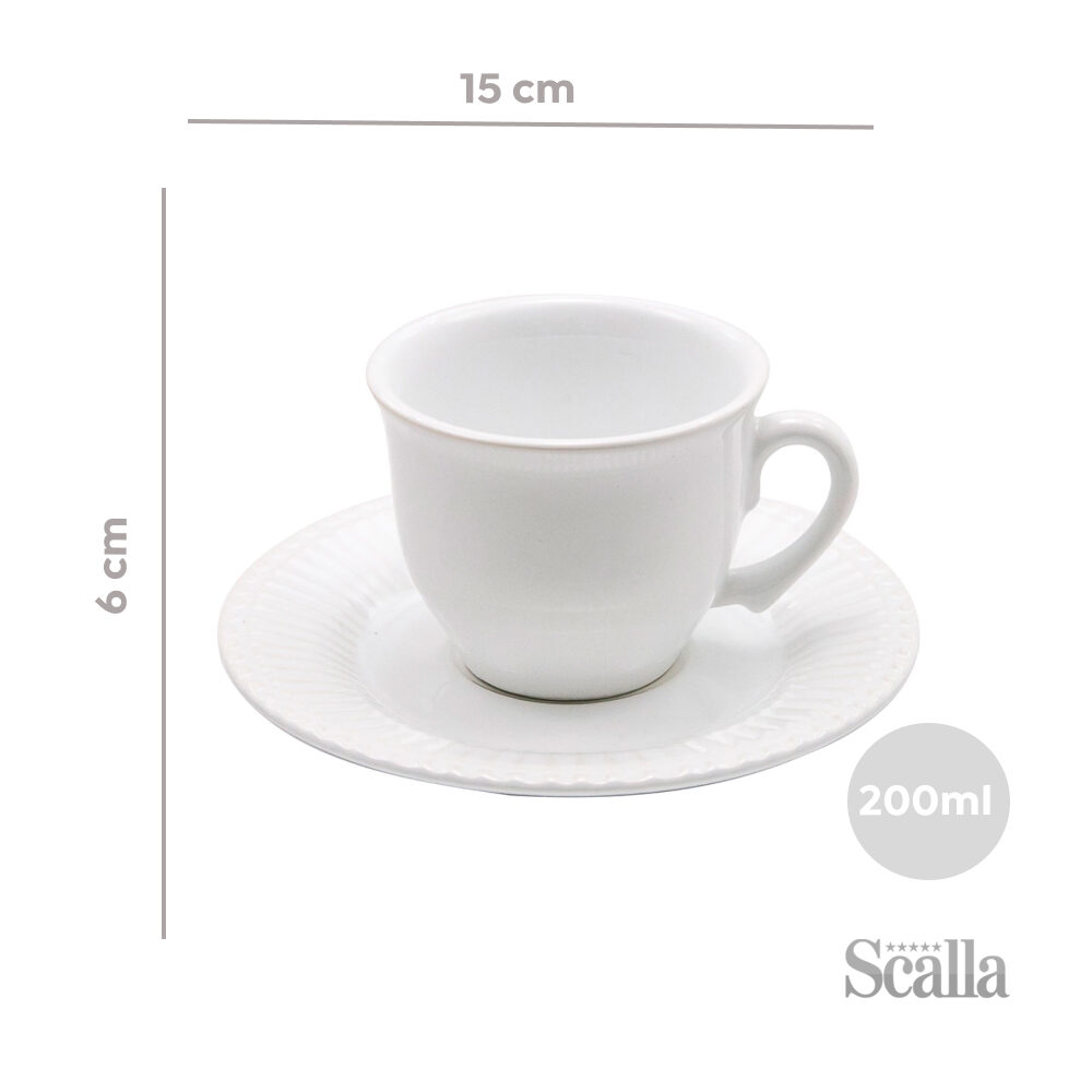 Jogo 6 Xícaras de Chá com Pires Frisada 200mL Branca Scalla