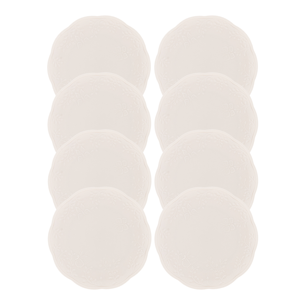 Jogo 8 Prato de Sobremesa Porcelana New Bone Butterfly Branco Off White Lyor 19cm