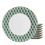 Jogo 8 Pratos Raso Joy Natalino Natal Xadrez Verde e Branco em Cerâmica Alleanza