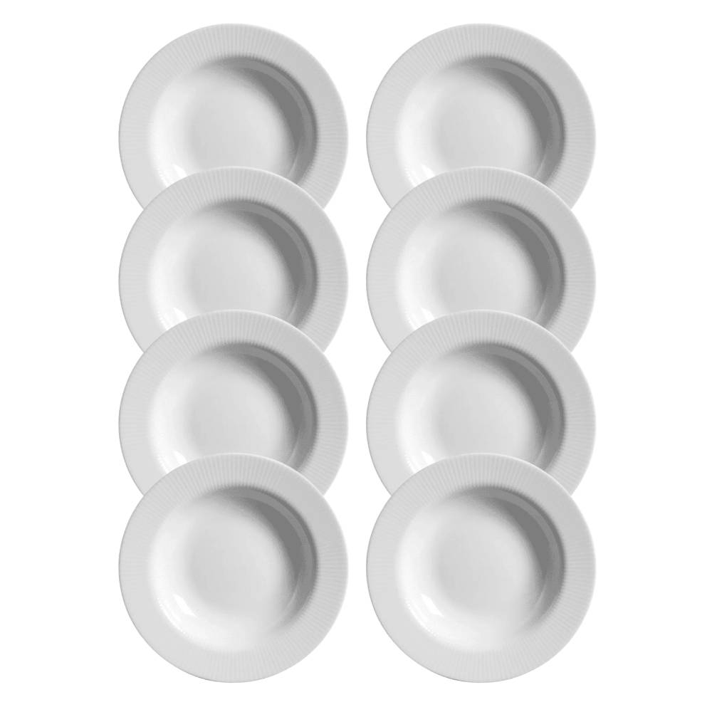 Jogo 8 Pratos Raso Plissan Relevo Branco 33cm Cerâmica Alleanza