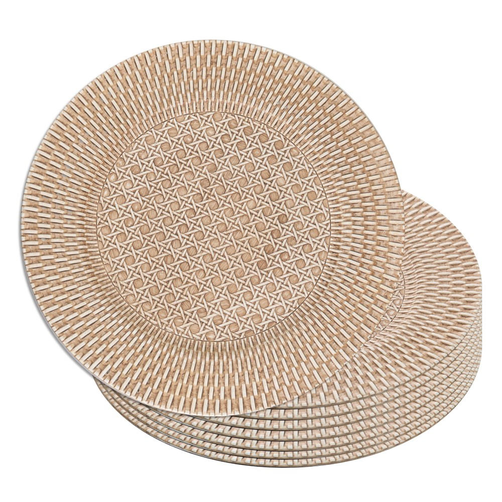 Jogo 8 Sousplat Redondo de Plástico Wolff com Textura de Rattan Bronze 33cm