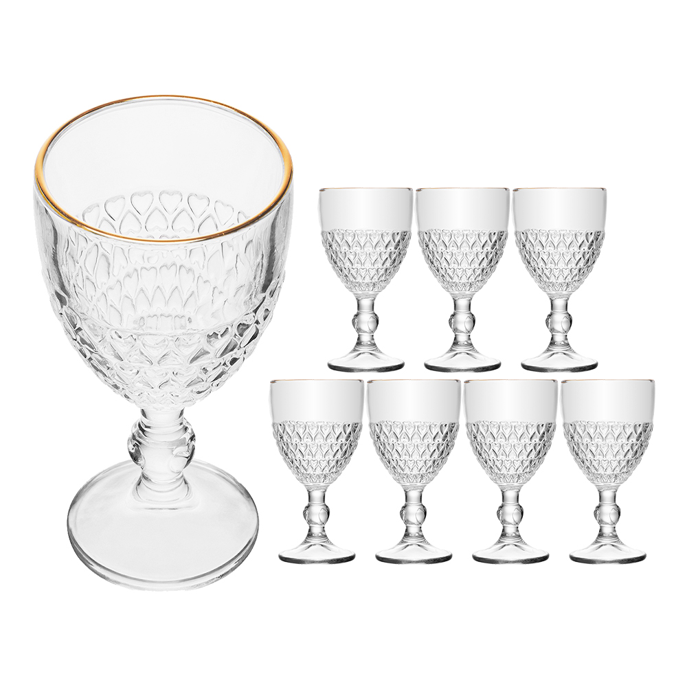 Jogo 8 Taça com Borda Dourada Coração Vidro Cor Transparente Fio de Ouro para Água 320ml Lyor