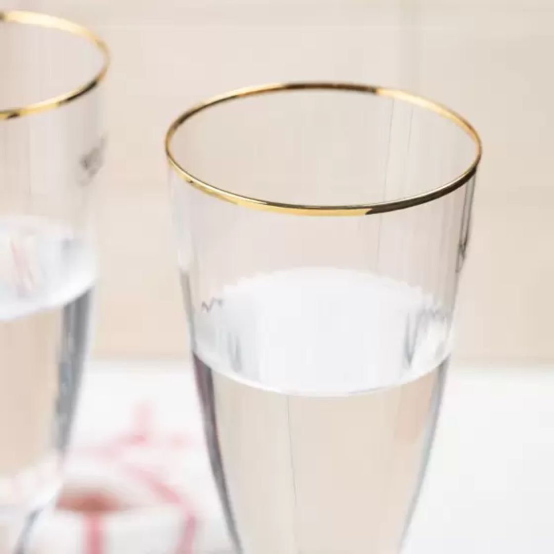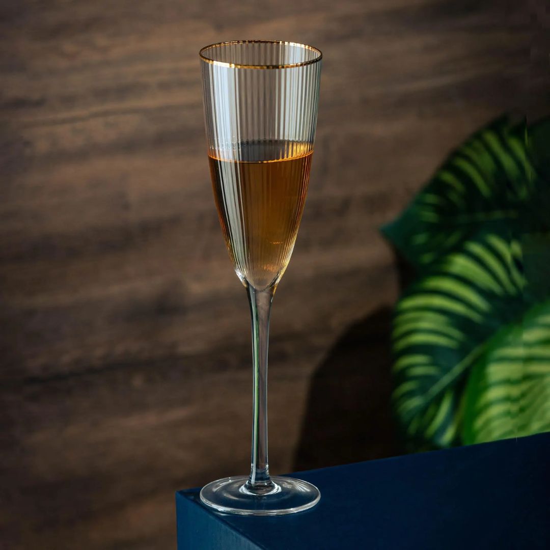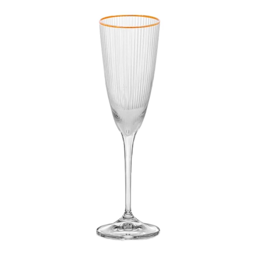 Taça de Champanhe Vidro Wolff Borda Dourada Lines 300ml