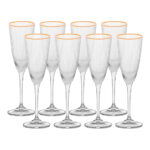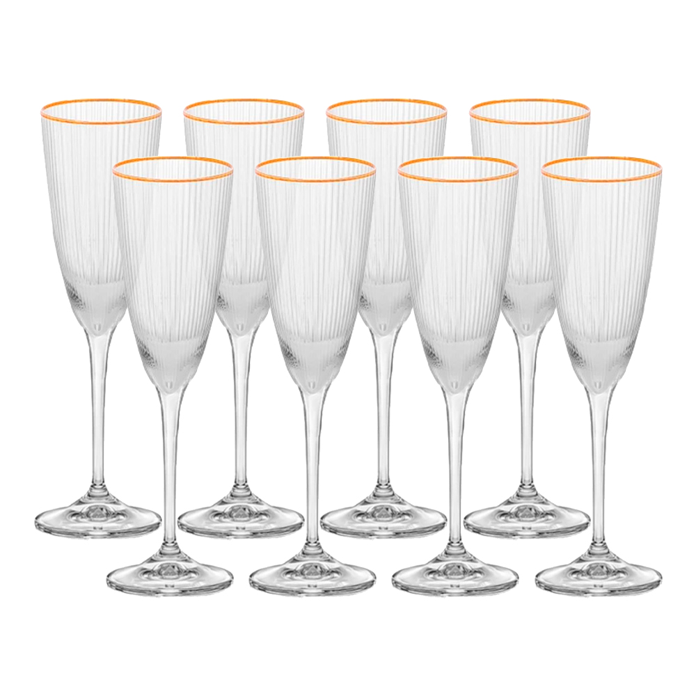 Jogo 8 Taças de Champanhe Vidro Wolff Borda Dourada Lines 300ml