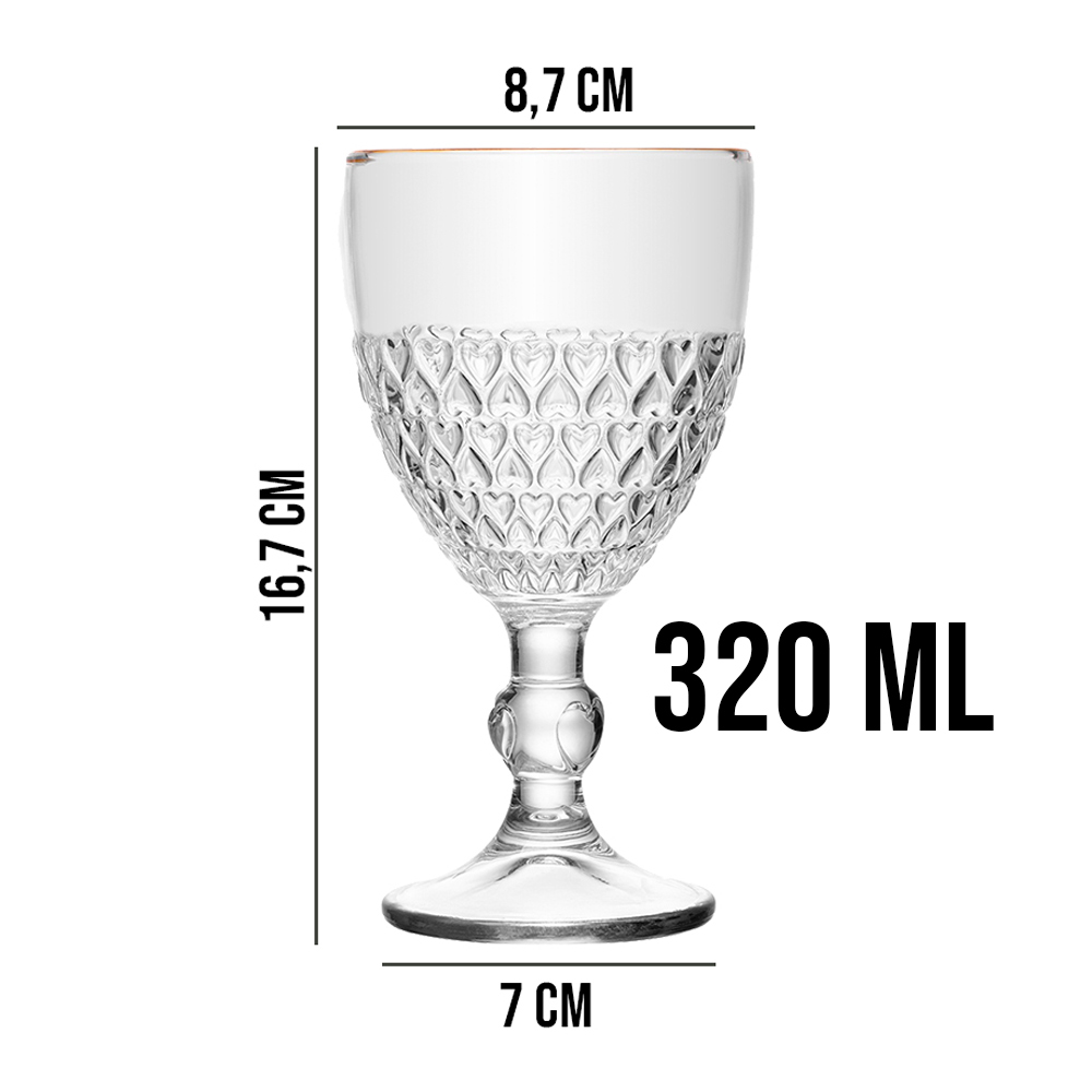 Taça com Borda Dourada Coração Vidro Cor Transparente Fio de Ouro para Água 320ml Lyor