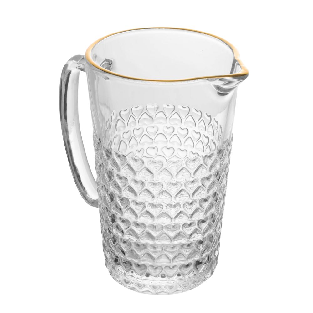 Jarra de Vidro Coração com Borda Dourada Fio de Ouro para Suco Água Refrigerante 1L Lyor