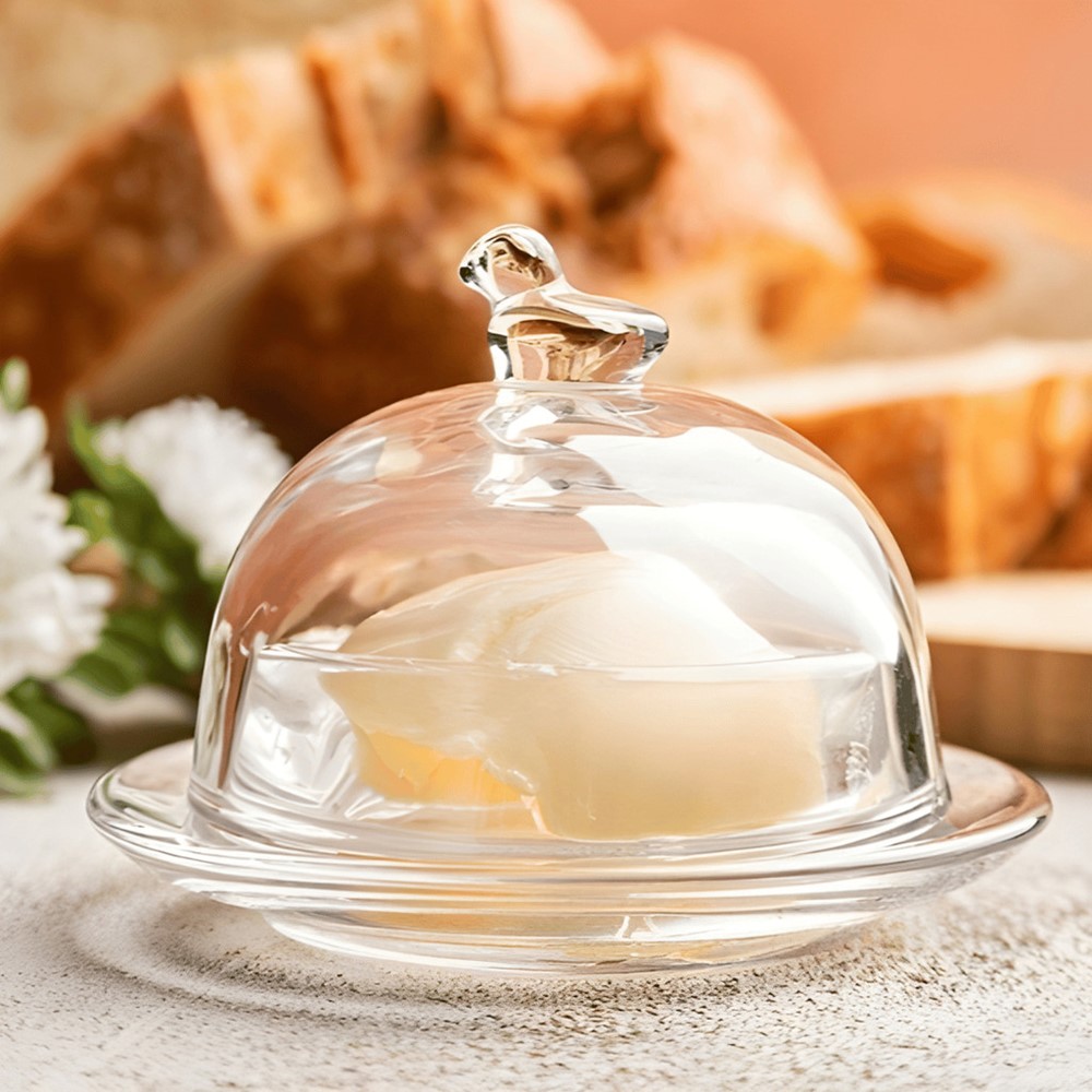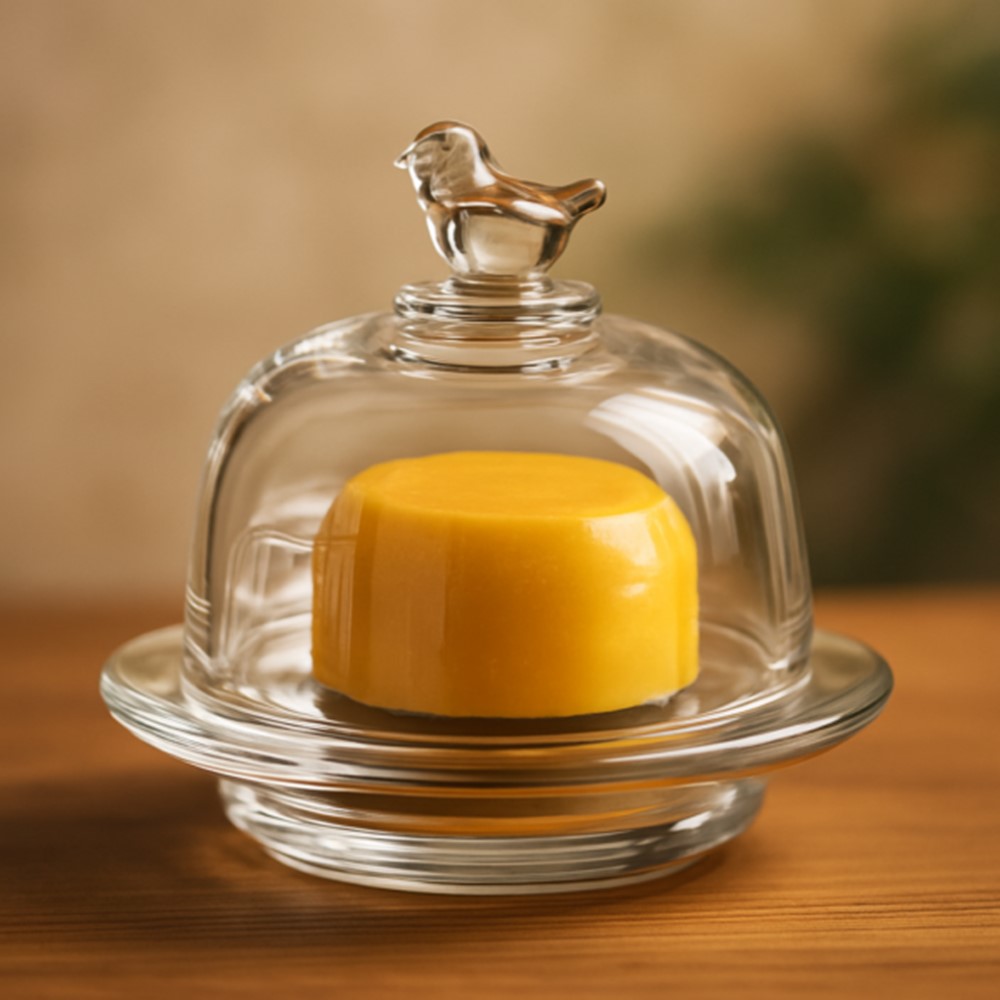 Manteigueira de Cristal Tampa com Pássaro Mesa Posta Lyor 9,5×6,5cm