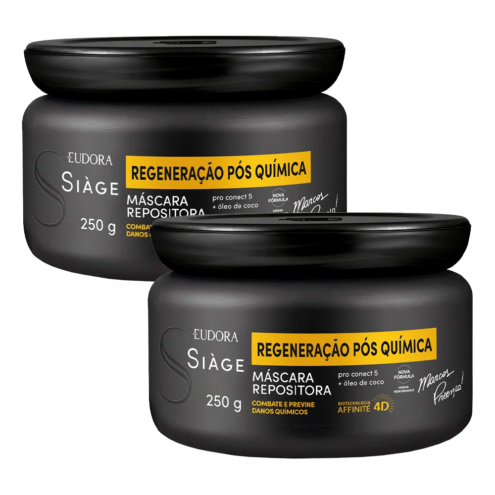 Kit 2 Máscara de Reconstrução Capilar Regeneração Pós Química Óleo de Coco 250g Eudora Siàge