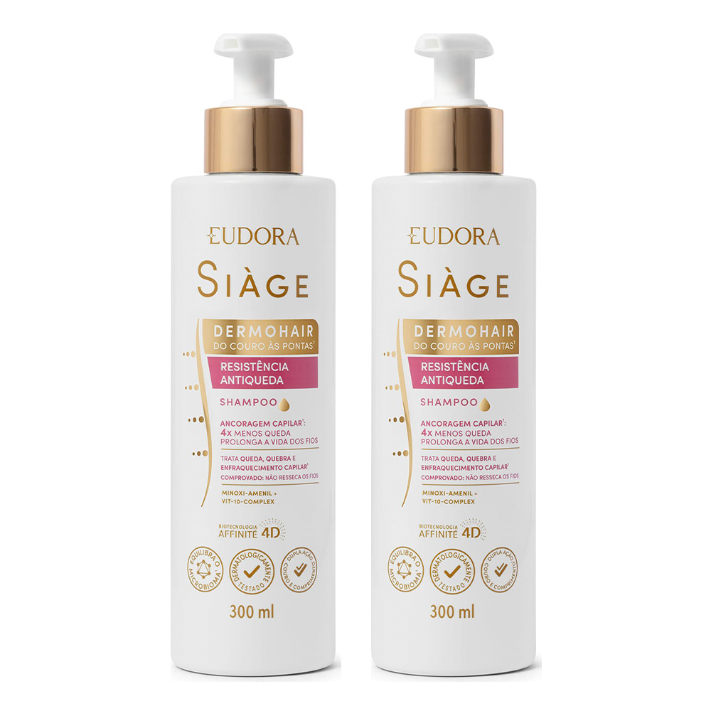 Kit 2 Shampoo Antiqueda Feminino Dermo Hair Resistência Minoxi Amenil 300ml Eudora Siàge