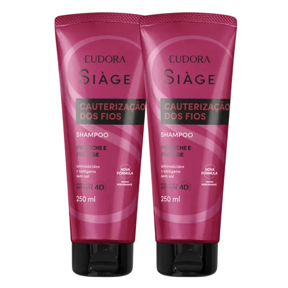 Kit 2 Shampoo Reconstrução Cauterização dos Fios Cabelos Secos 250ml Reparação Eudora Siàge