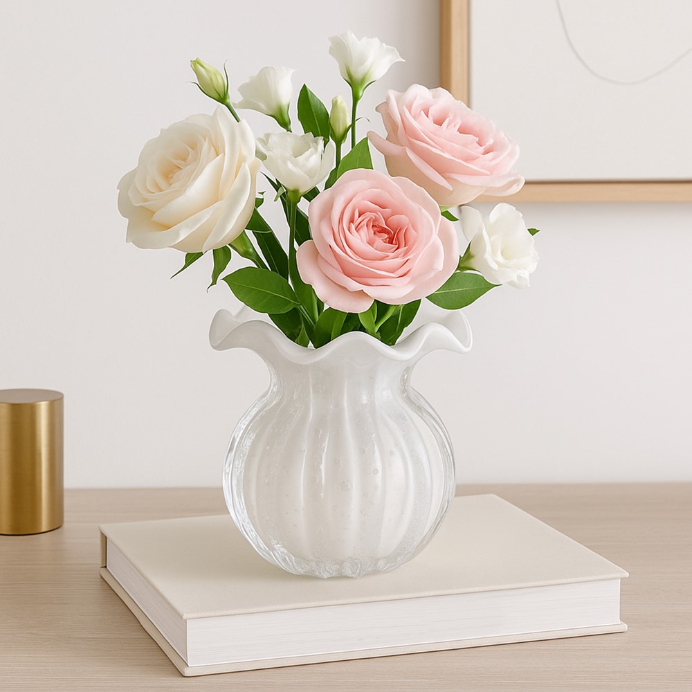 Vaso de Vidro Murano Flor Plantas Arranjos Branco Leitoso Trouxinha 10x11cm Lemis