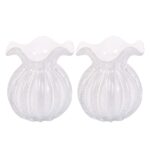 Kit 2 Vaso de Vidro Murano Flor Plantas Arranjos Branco Leitoso Trouxinha 10x11cm Lemis