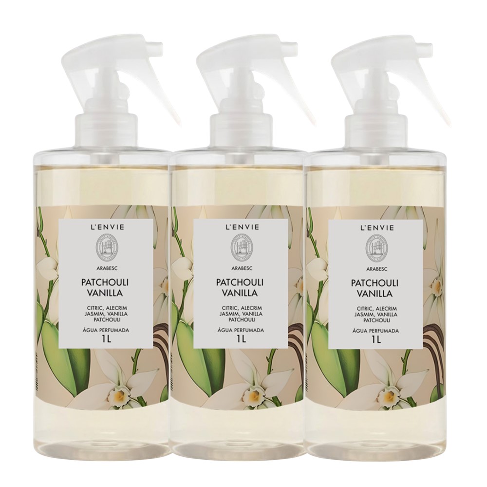 Kit 3 Água Perfumada Aromatizada Patchouli Vanilla Perfume para Roupas Lencóis Cheiro 1L Lenvie