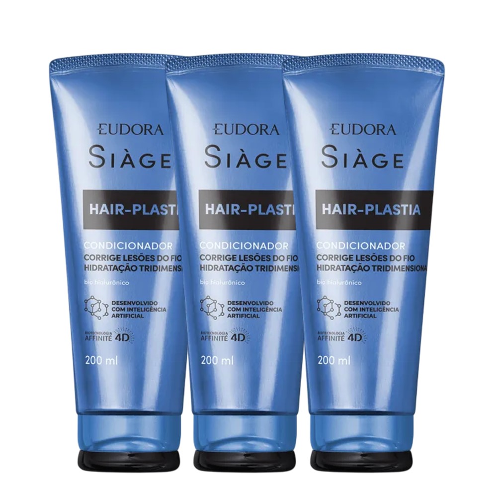 Kit 3 Condicionador Hair Plastia Plástica dos Fios Hidratação Capilar 200ml Eudora Siàge