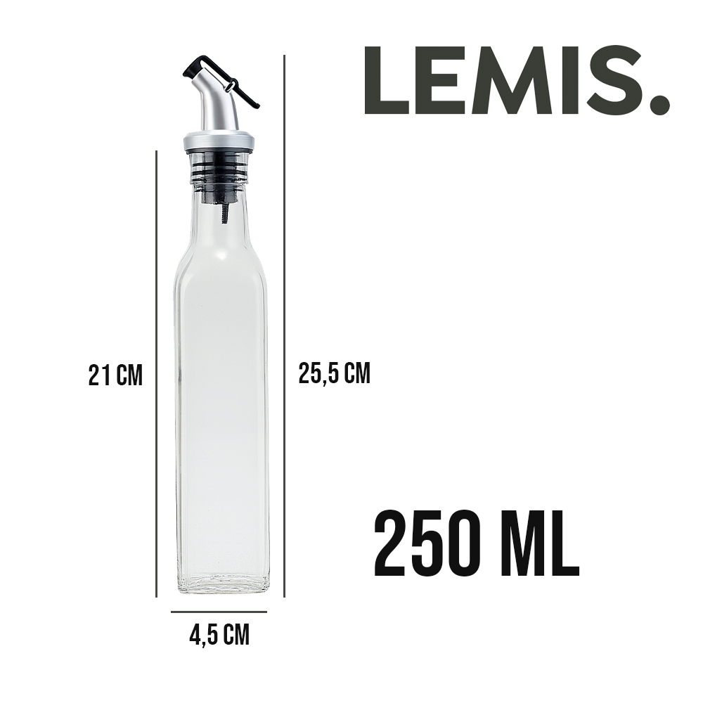 Galheteiro de Vidro Garrafa Porta Azeite 250ml Mesa com Bico Dosador Vinagre Lemis