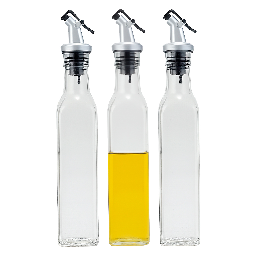 Kit 3 Galheteiro de Vidro Garrafa Porta Azeite 250ml Mesa com Bico Dosador Vinagre Lemis