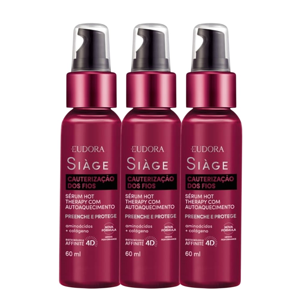Kit 3 Sérum Hot Eudora Cauterização dos Fios Auto Aquecimento Therapy 60ml Siàge