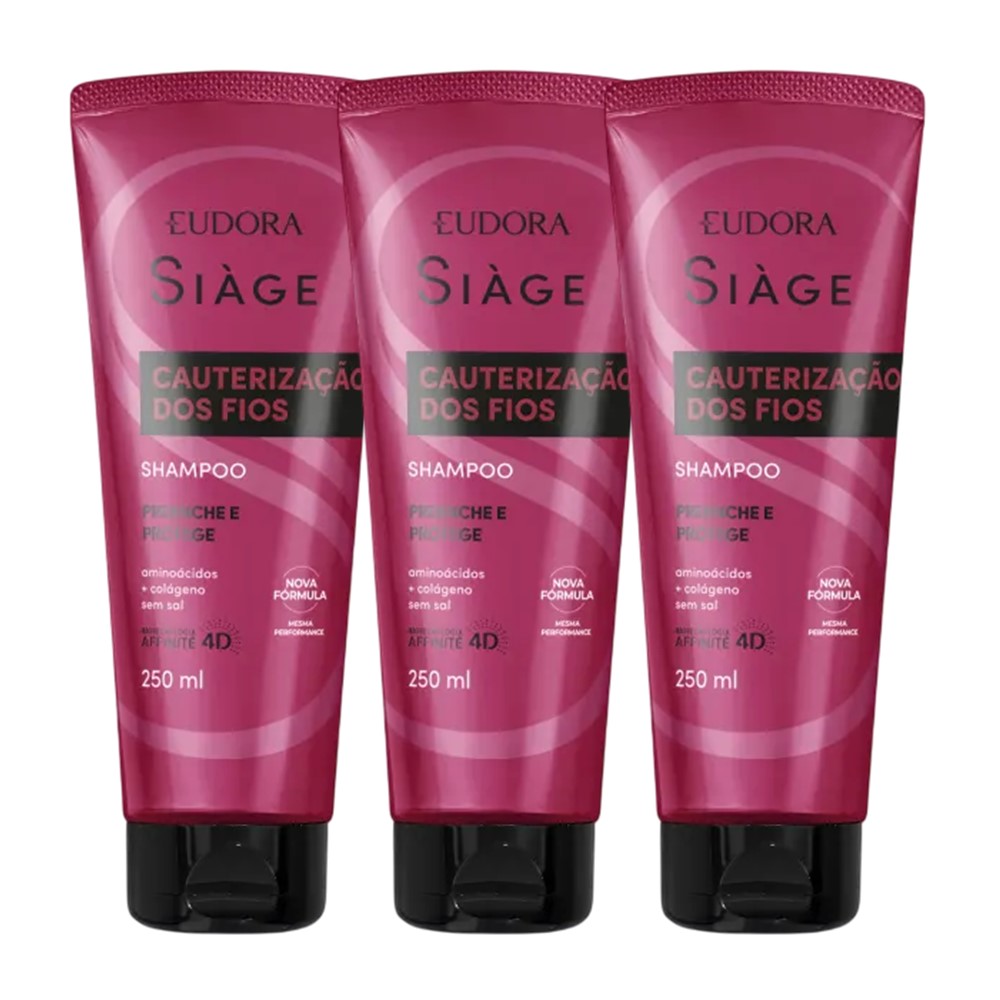 Kit 3 Shampoo Reconstrução Cauterização dos Fios Cabelos Secos 250ml Reparação Eudora Siàge