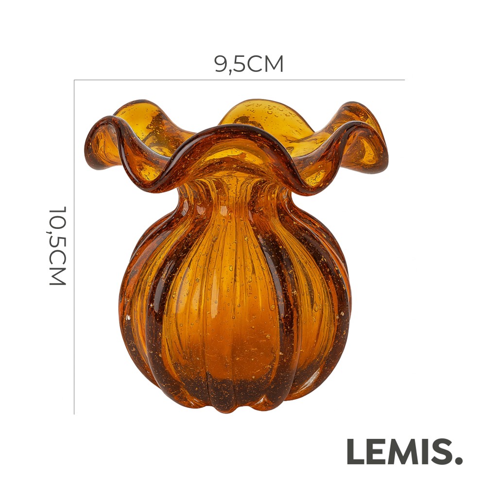 Vaso de Vidro Murano Flor Plantas Arranjos Âmbar Trouxinha 10x11cm Lemis