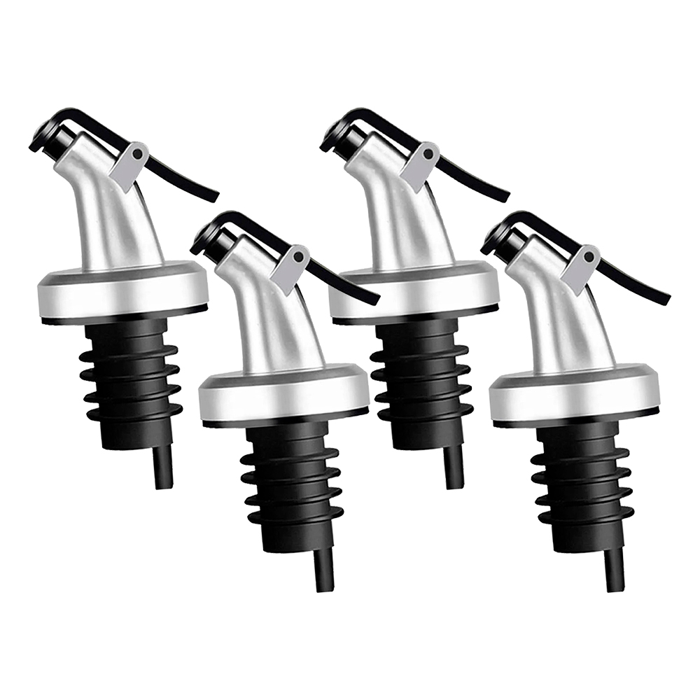 Kit 4 Bico Dosador de Garrafa de Azeite Vinagre com Vedação Silicone Tampa Galheteiro Lemis