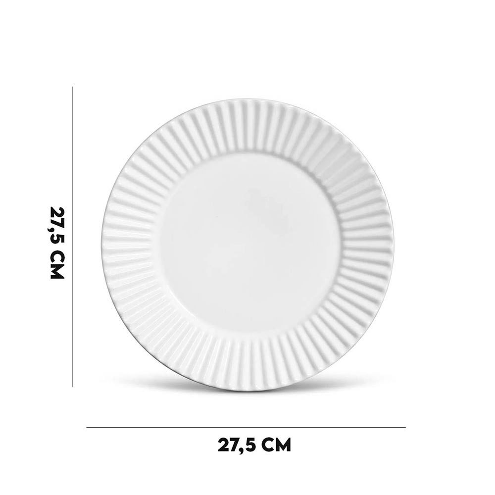 Kit 4 Pratos Rasos Frisada Branco 1ª Linha Scalla