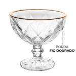 Taça de Sobremesa Vidro com Borda Fio Dourado Diamond Sorvete Lyor 250ml