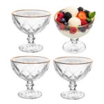 Jogo de Sobremesa 4 Taças Vidro com Borda Fio Dourado Diamond Sorvete Lyor 250ml