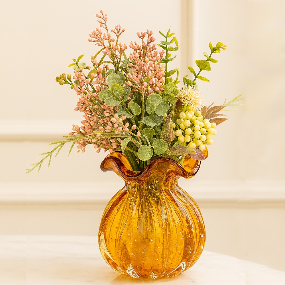 Vaso de Vidro Murano Flor Plantas Arranjos Âmbar Trouxinha 10x11cm Lemis