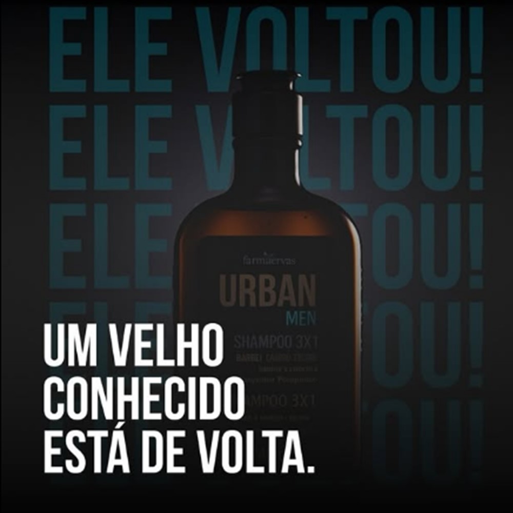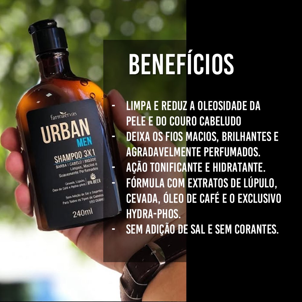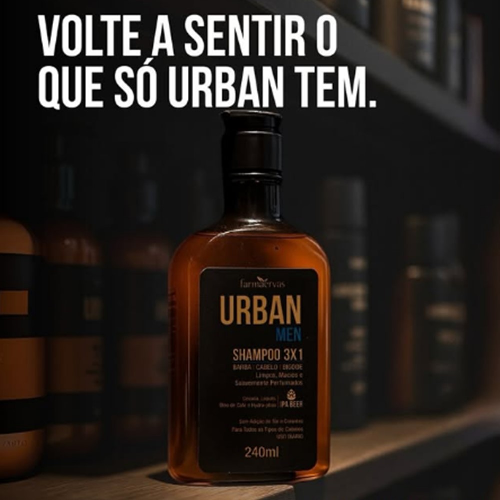 Shampoo Masculino 3×1 Barba Cabelo Bigode 240ml Urban Men Farmaervas