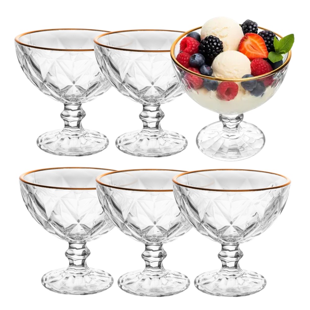 Jogo de Sobremesa 6 Taças Vidro com Borda Fio Dourado Diamond Sorvete Lyor 250ml