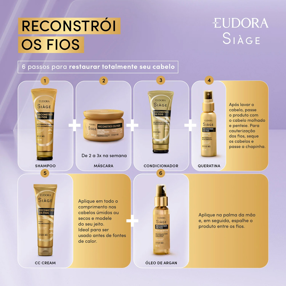 Shampoo Reconstrução Reparação Reconstrói Os Fios Restauração 250ml Eudora Siàge